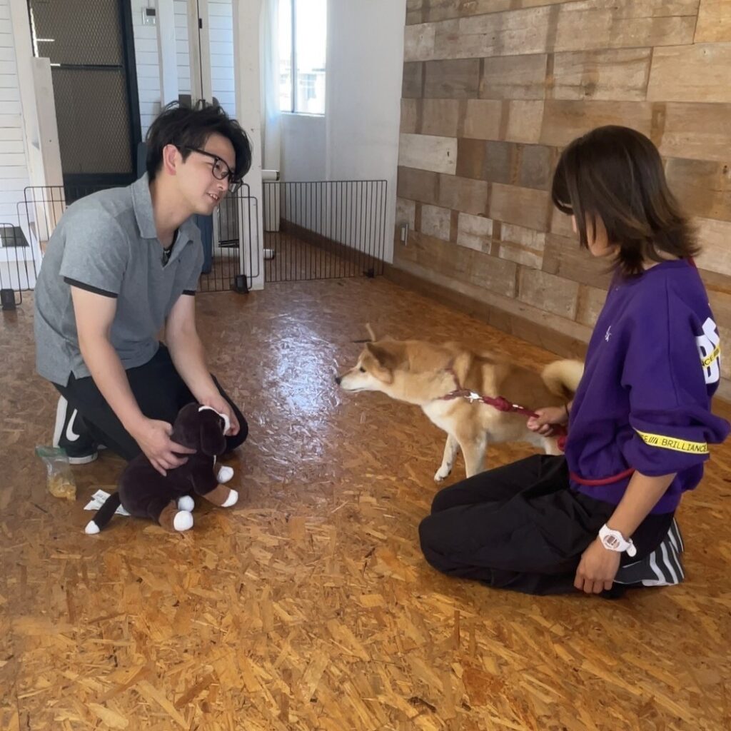 ワンちゃんへトレーニングする事が難しいそう。と、言う飼い主様には、ぬいぐるみを使って必要な力加減・タイミングをお教えいたします。ワンちゃんの体の使い方から学んでいただくことも可能です。